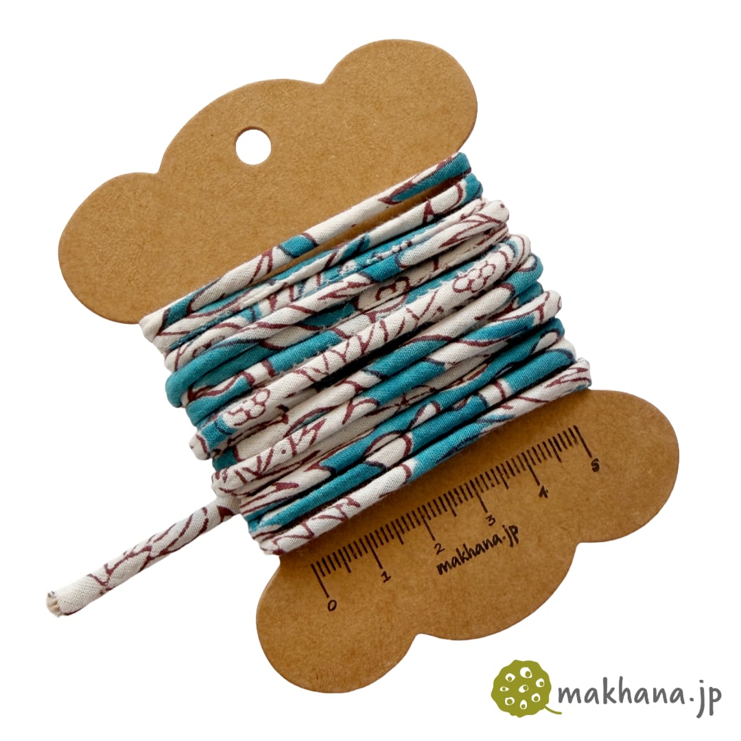 インド製 ハンドブロックプリント 丸紐 手芸用 3mm幅 2m N ※2本以上でご注文ください