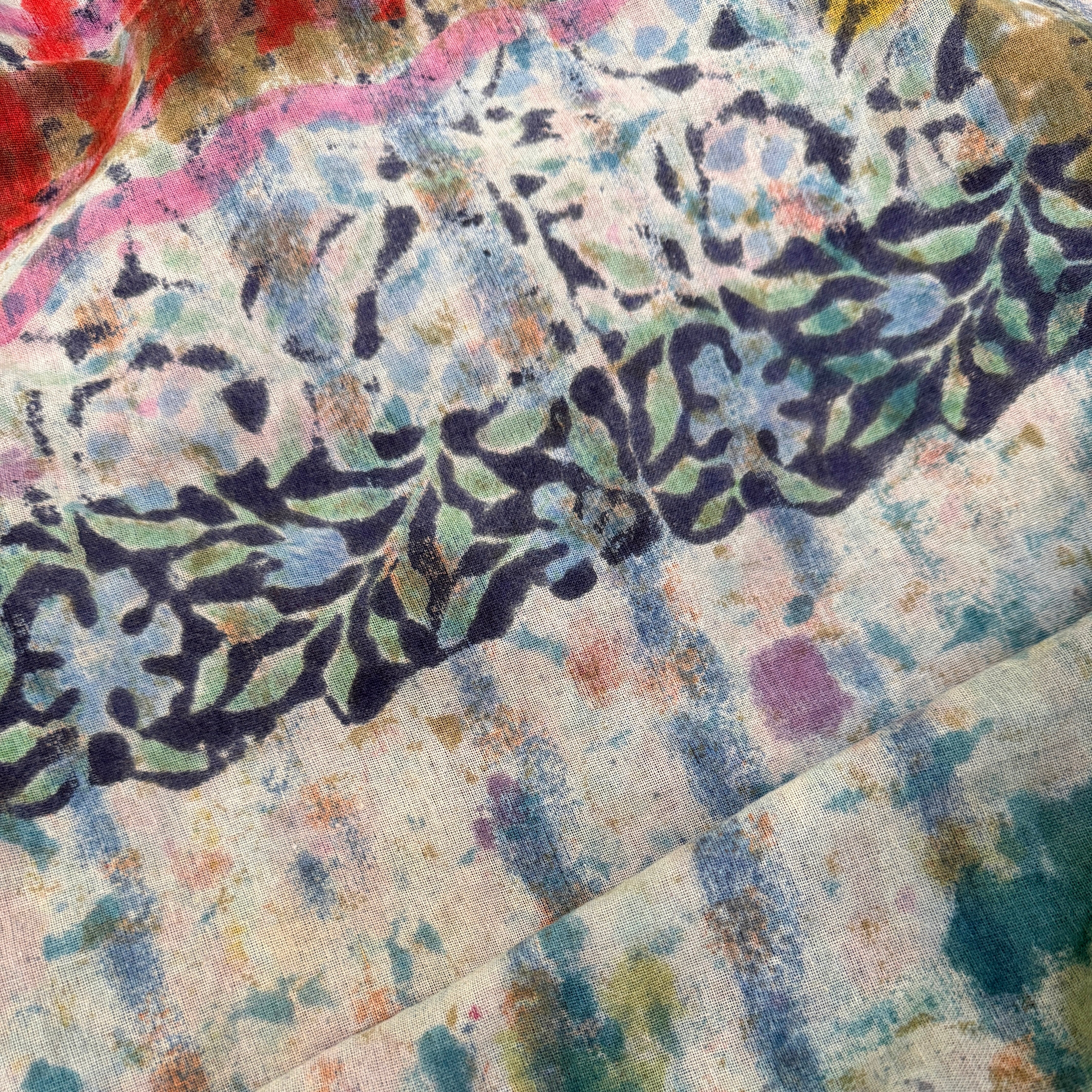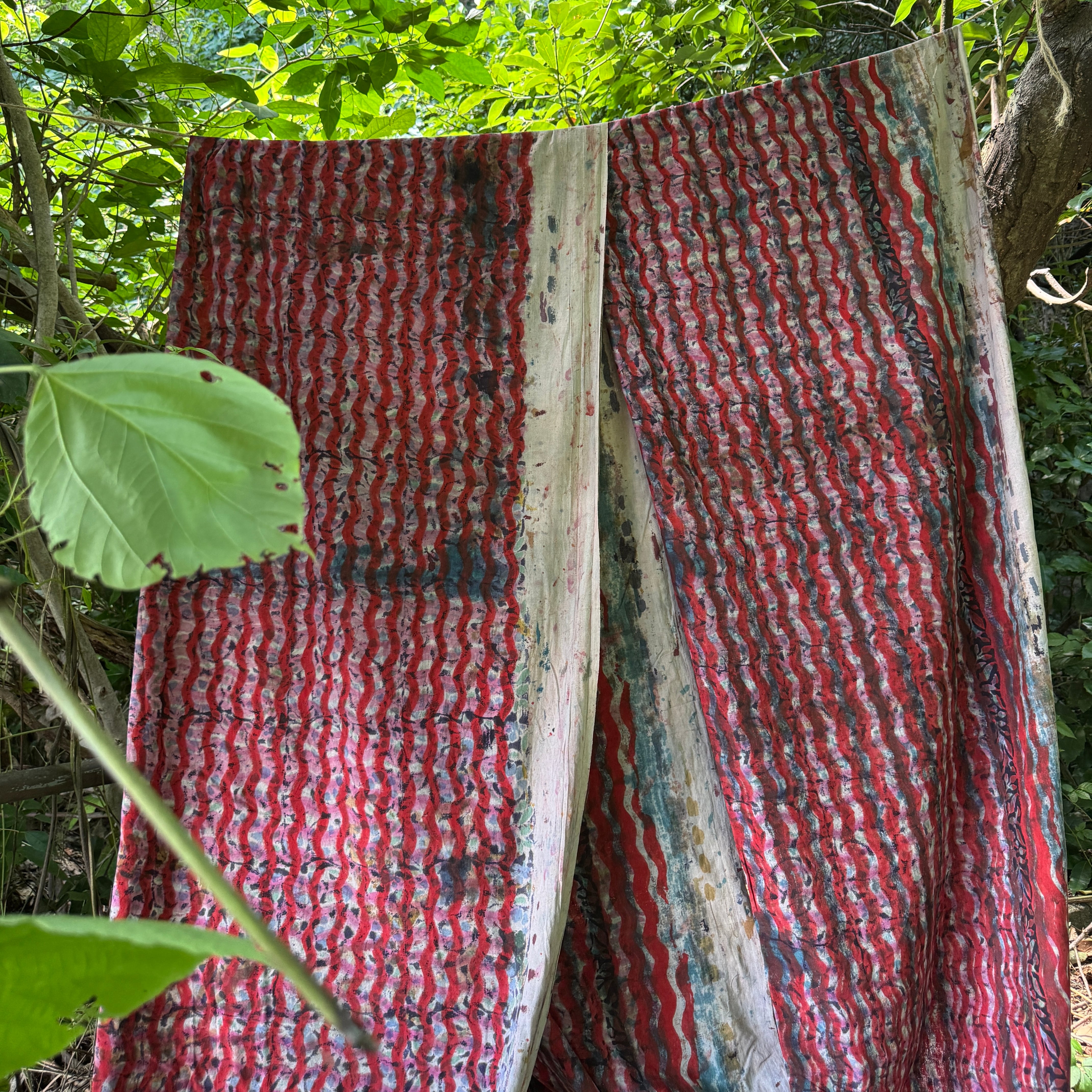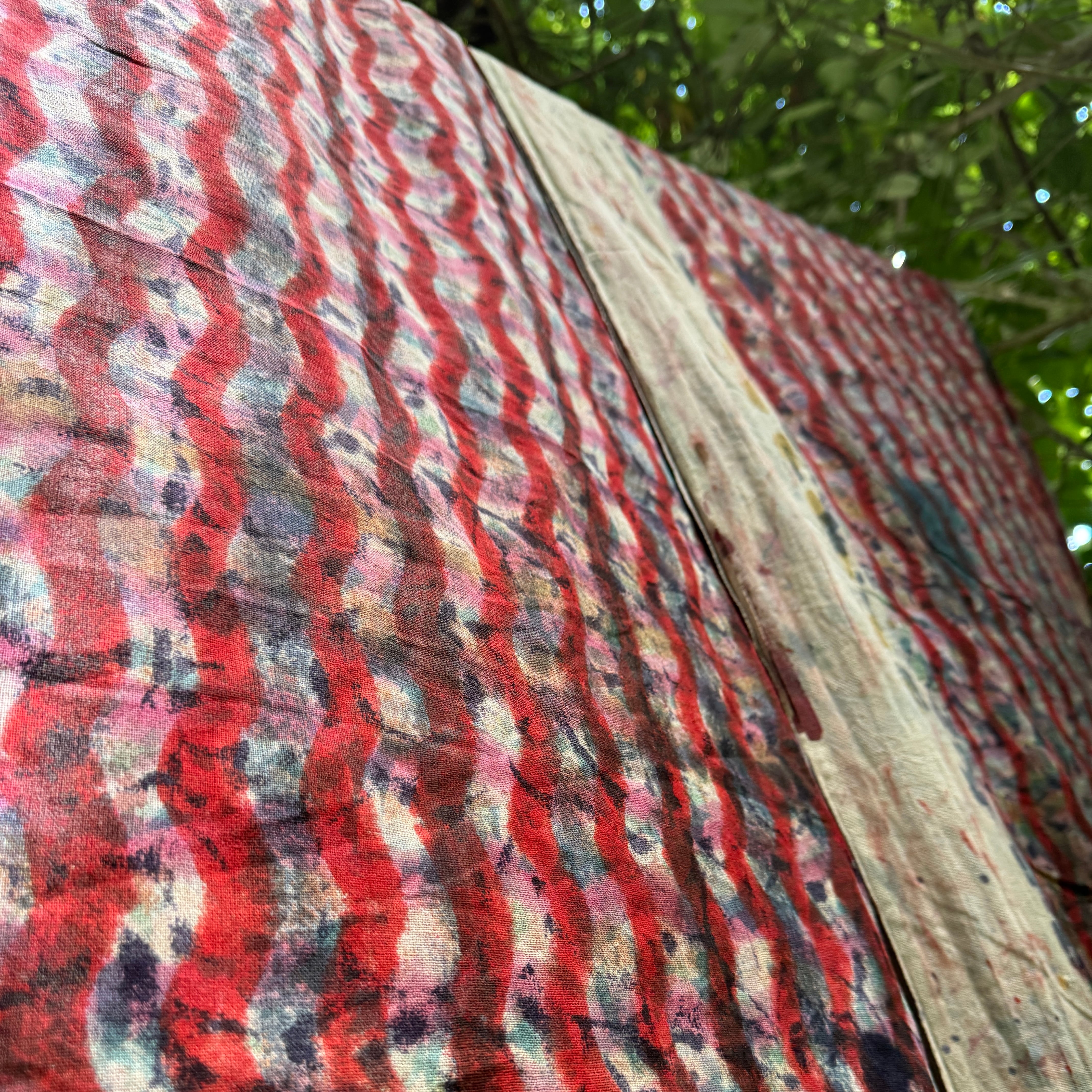 インドのETP (Eco Technology Project)に基づき、毎回捨てずに繰り返し洗って使うことで木版の重なりが複雑に染み込んで味わいのある色に仕上がっています