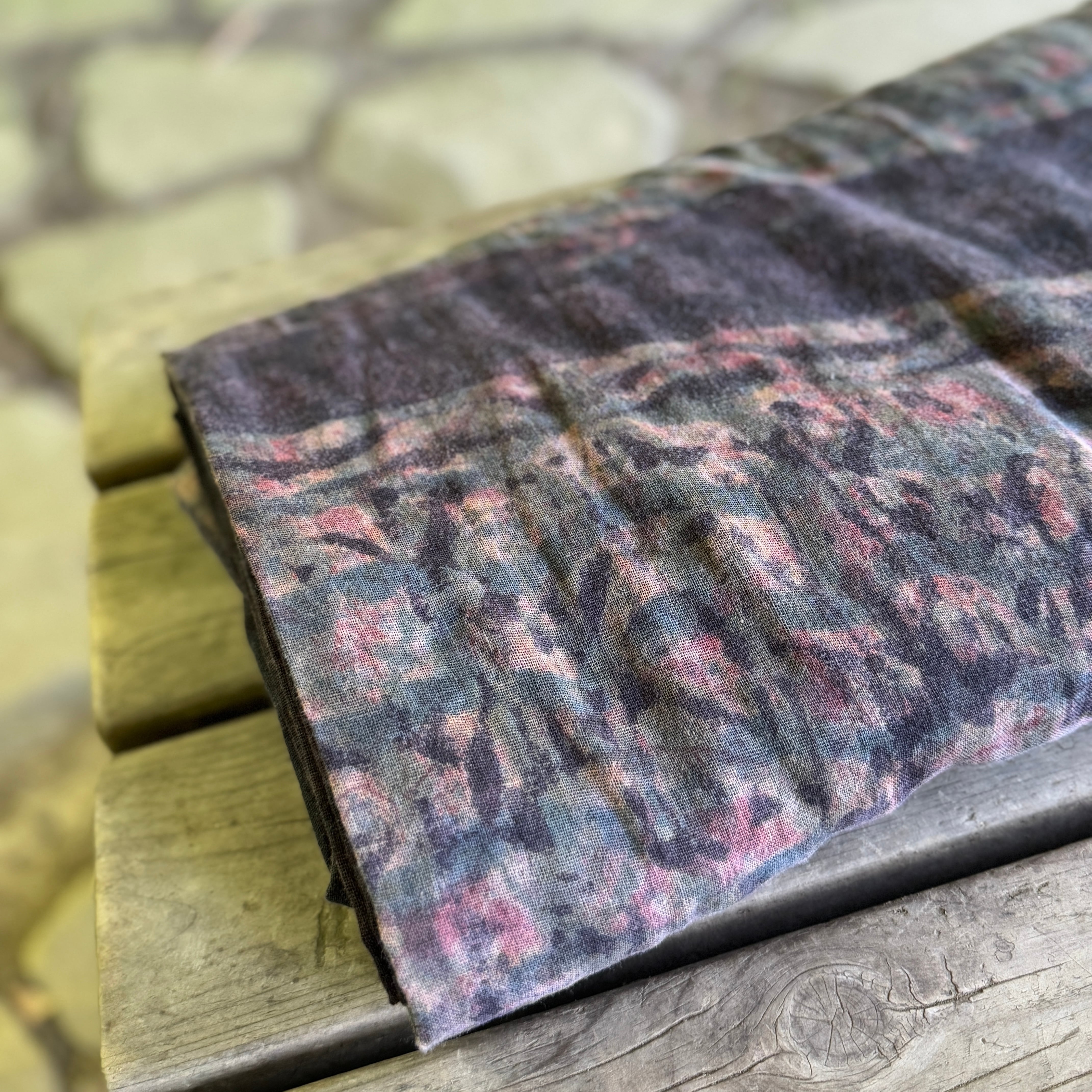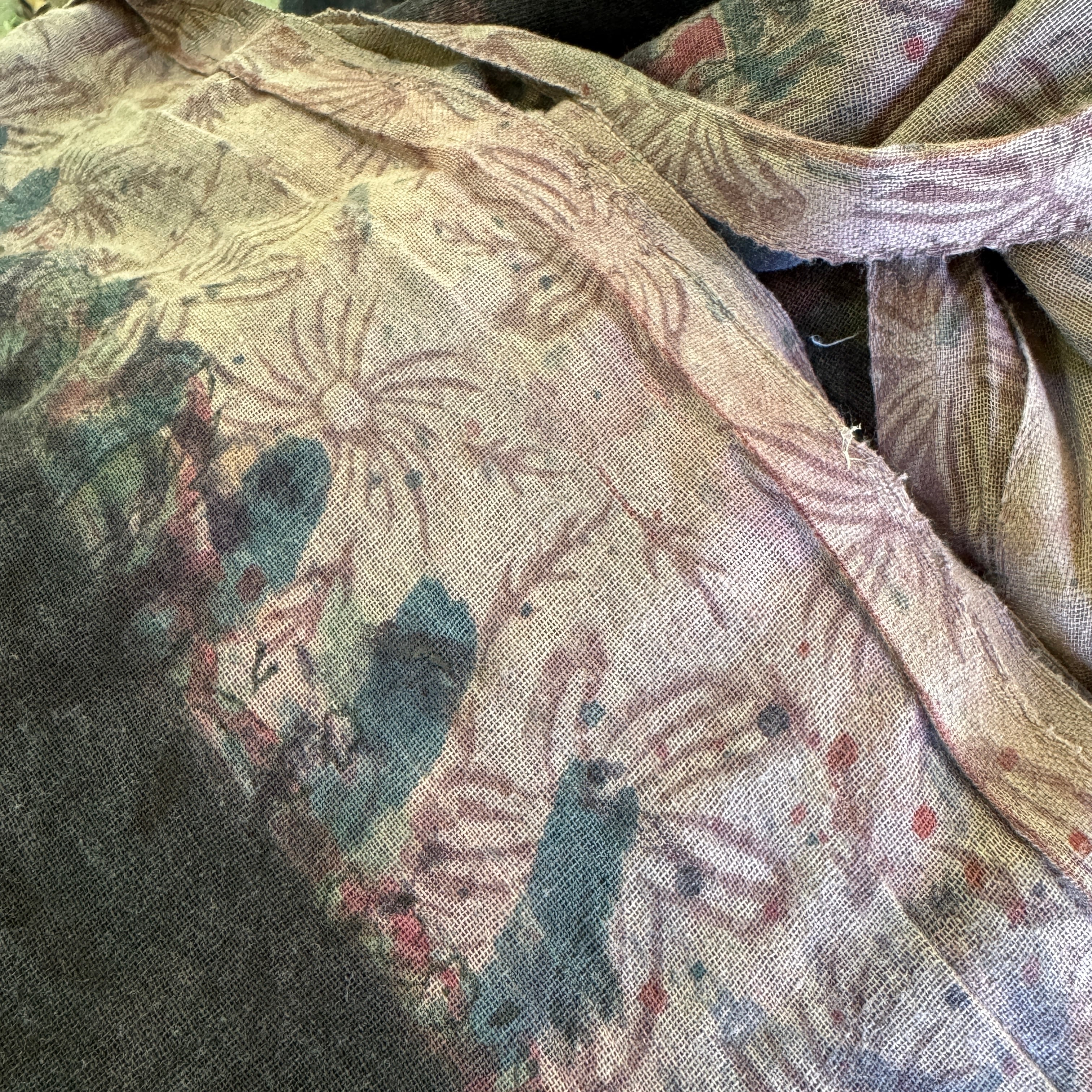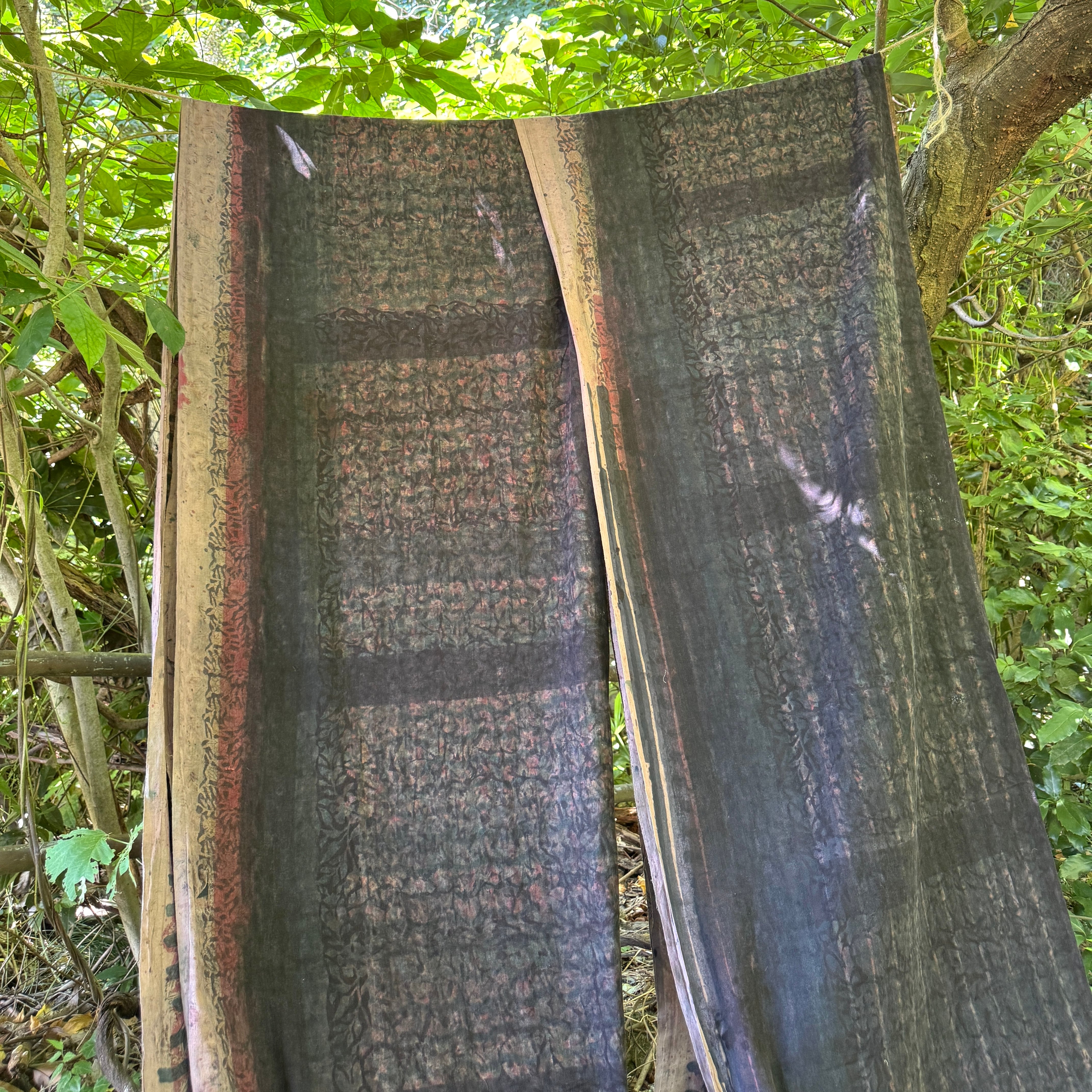 インドのETP (Eco Technology Project)に基づき、毎回捨てずに繰り返し洗って使うことで木版の重なりが複雑に染み込んで味わいのある色に仕上がっています