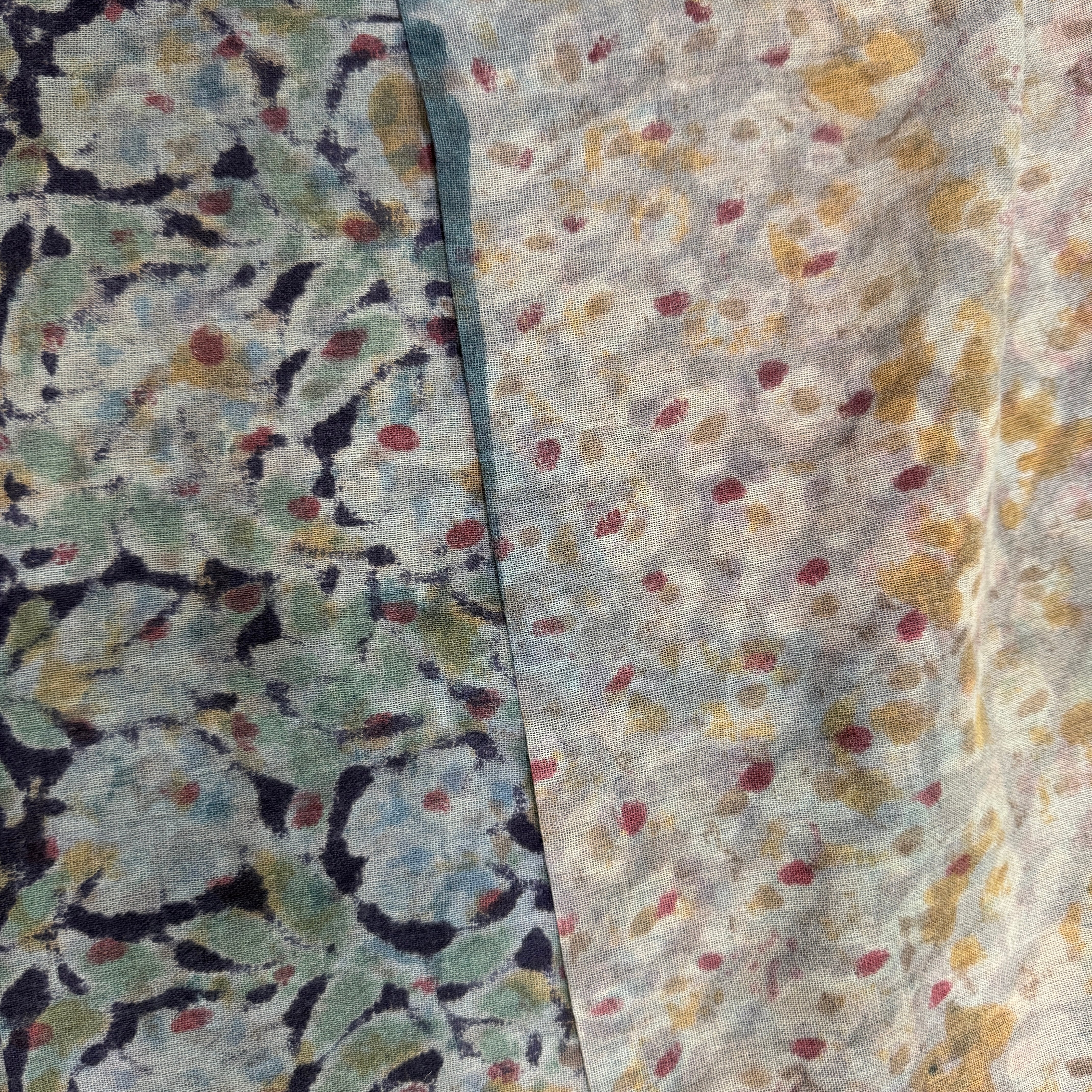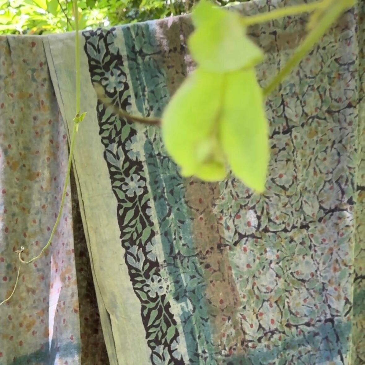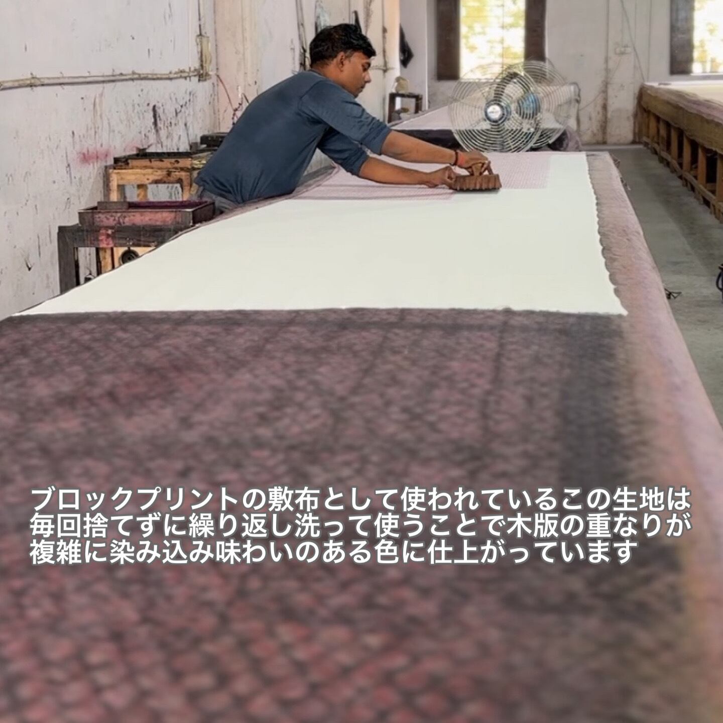 インドのETP (Eco Technology Project)に基づき、毎回捨てずに繰り返し洗って使うことで木版の重なりが複雑に染み込んで味わいのある色に仕上がっています