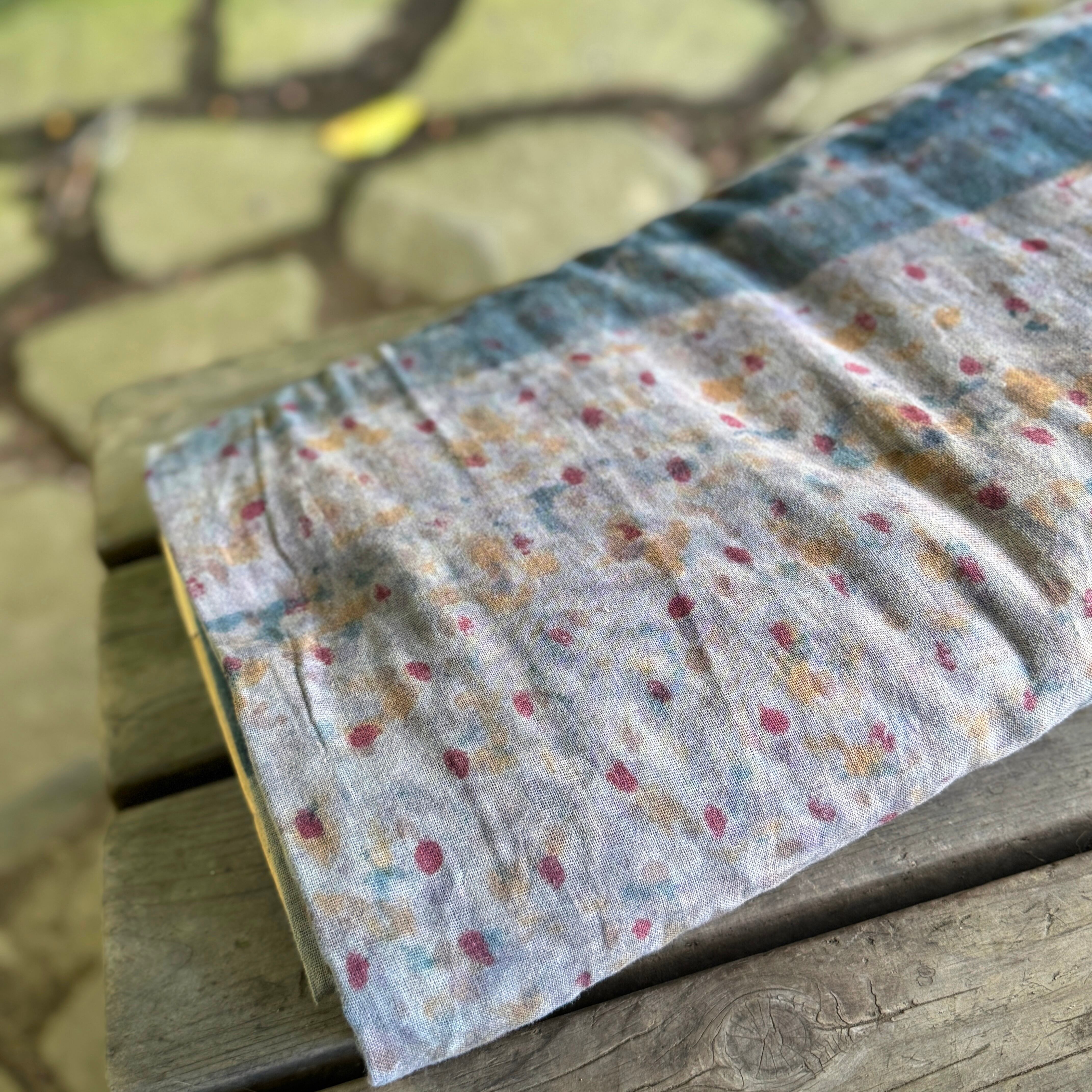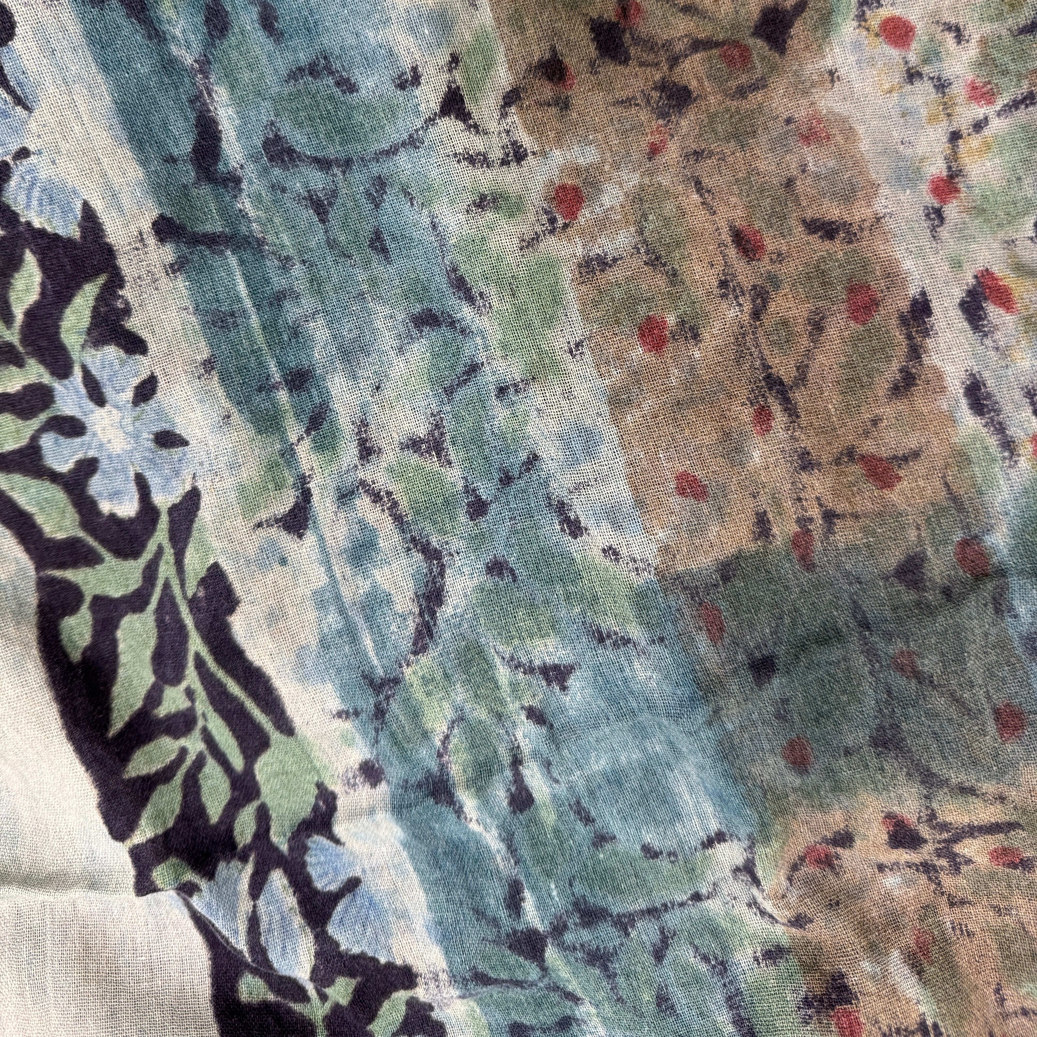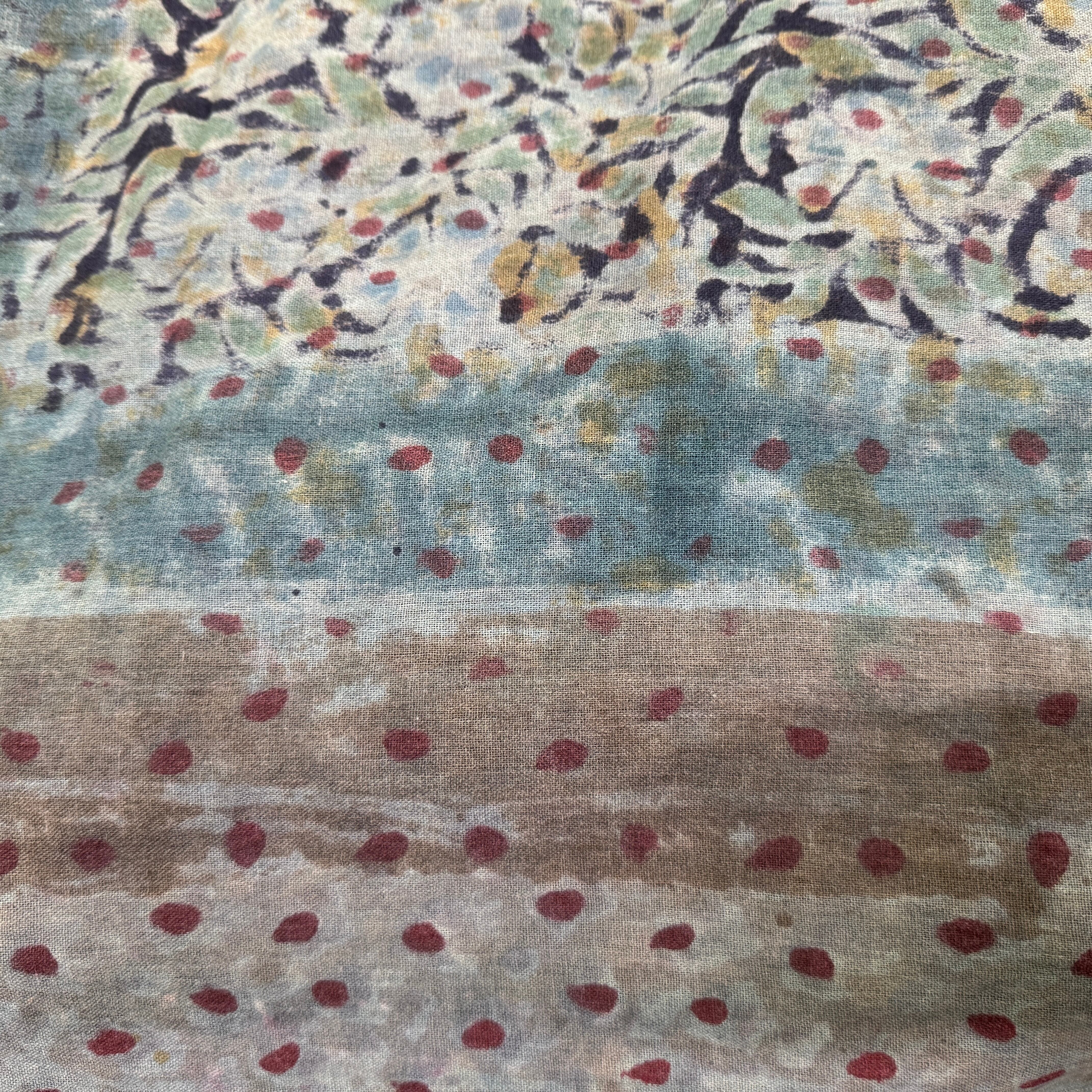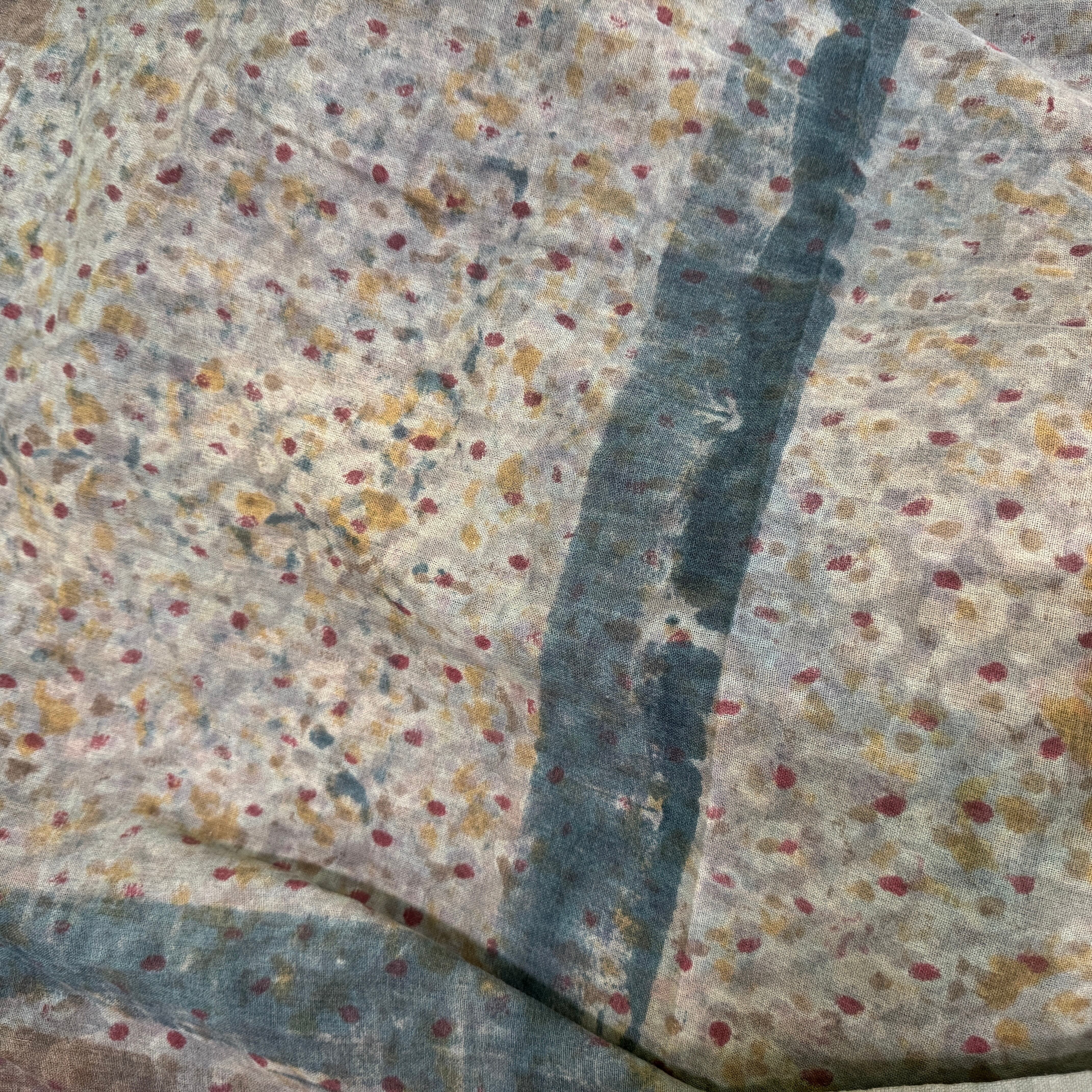 インドのETP (Eco Technology Project)に基づき、毎回捨てずに繰り返し洗って使うことで木版の重なりが複雑に染み込んで味わいのある色に仕上がっています