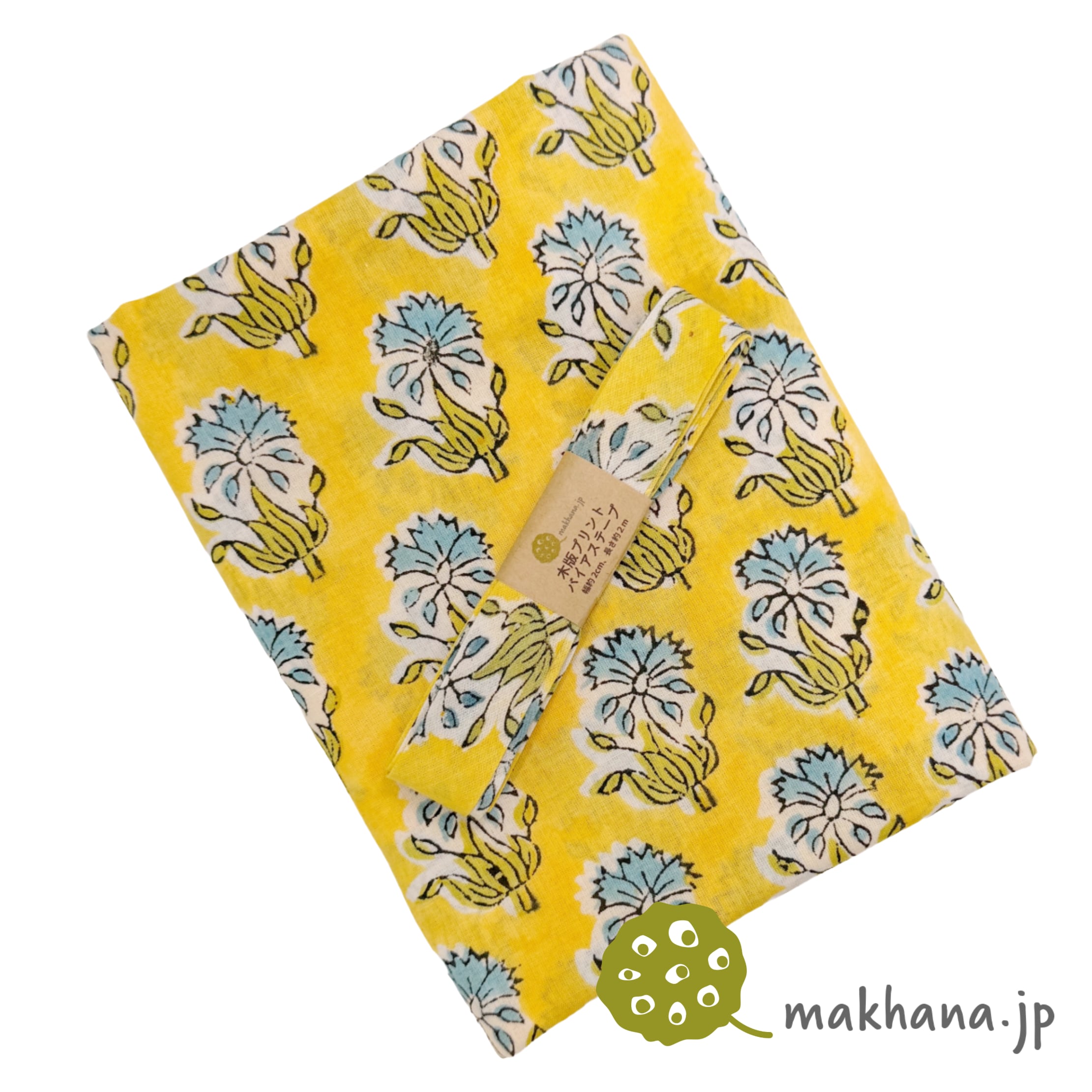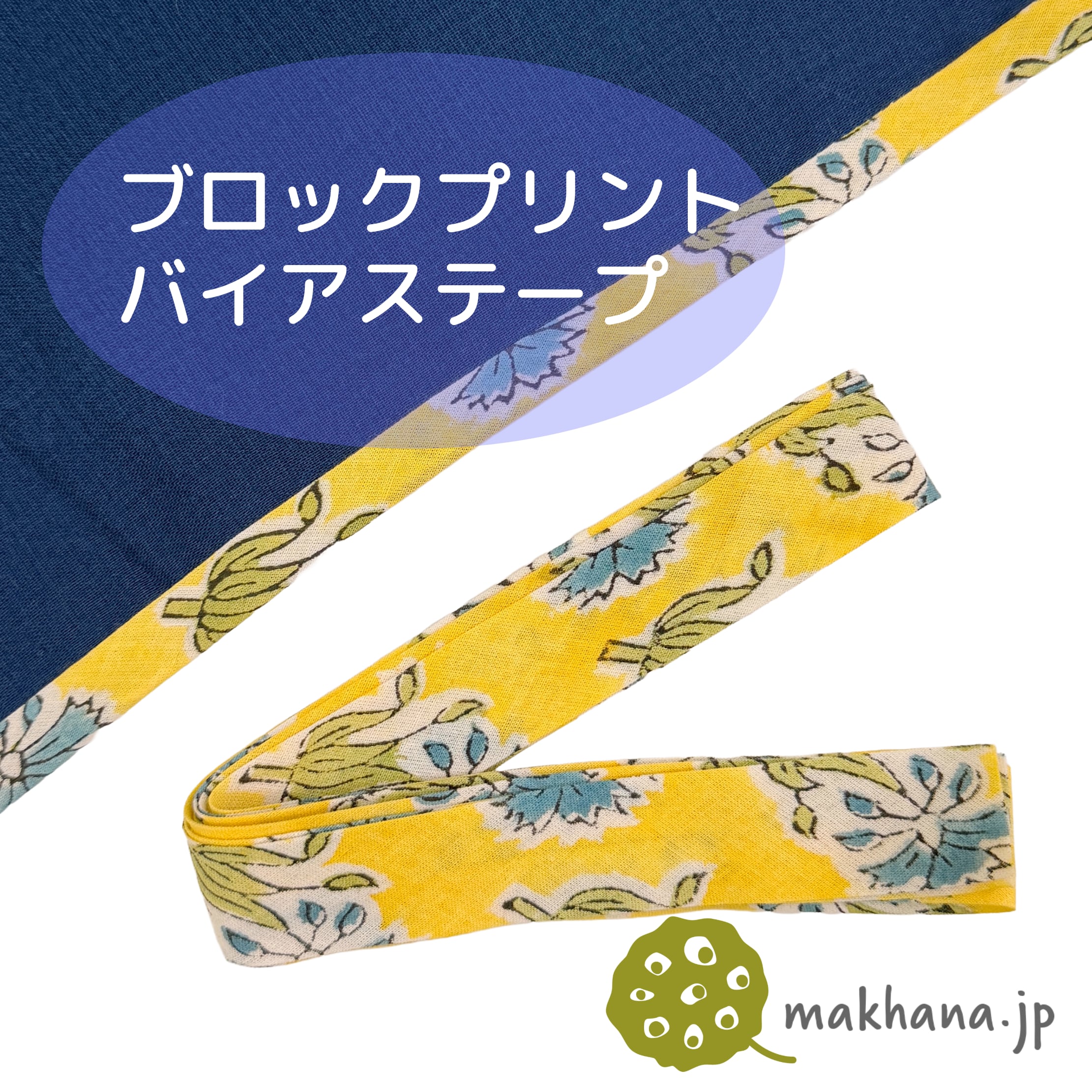 木製の型を手で押し当てながら色柄を重ねていくインドの伝統的なプリント生地で作ったバイアステープです