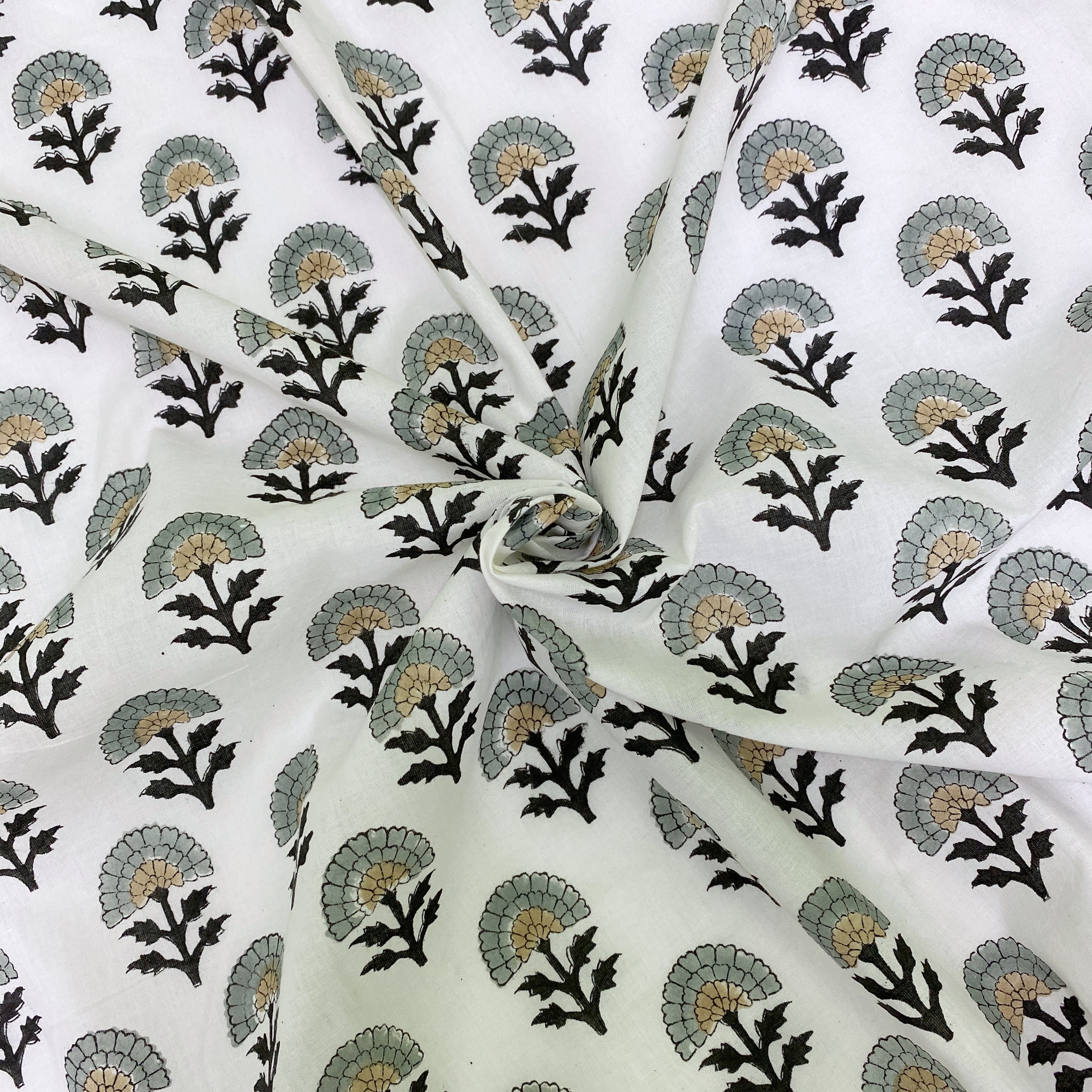 【商用可・送料込】インド産ハンドブロックプリント生地とバイアステープのセット NHB150A/生地1m+バイアステープ2m