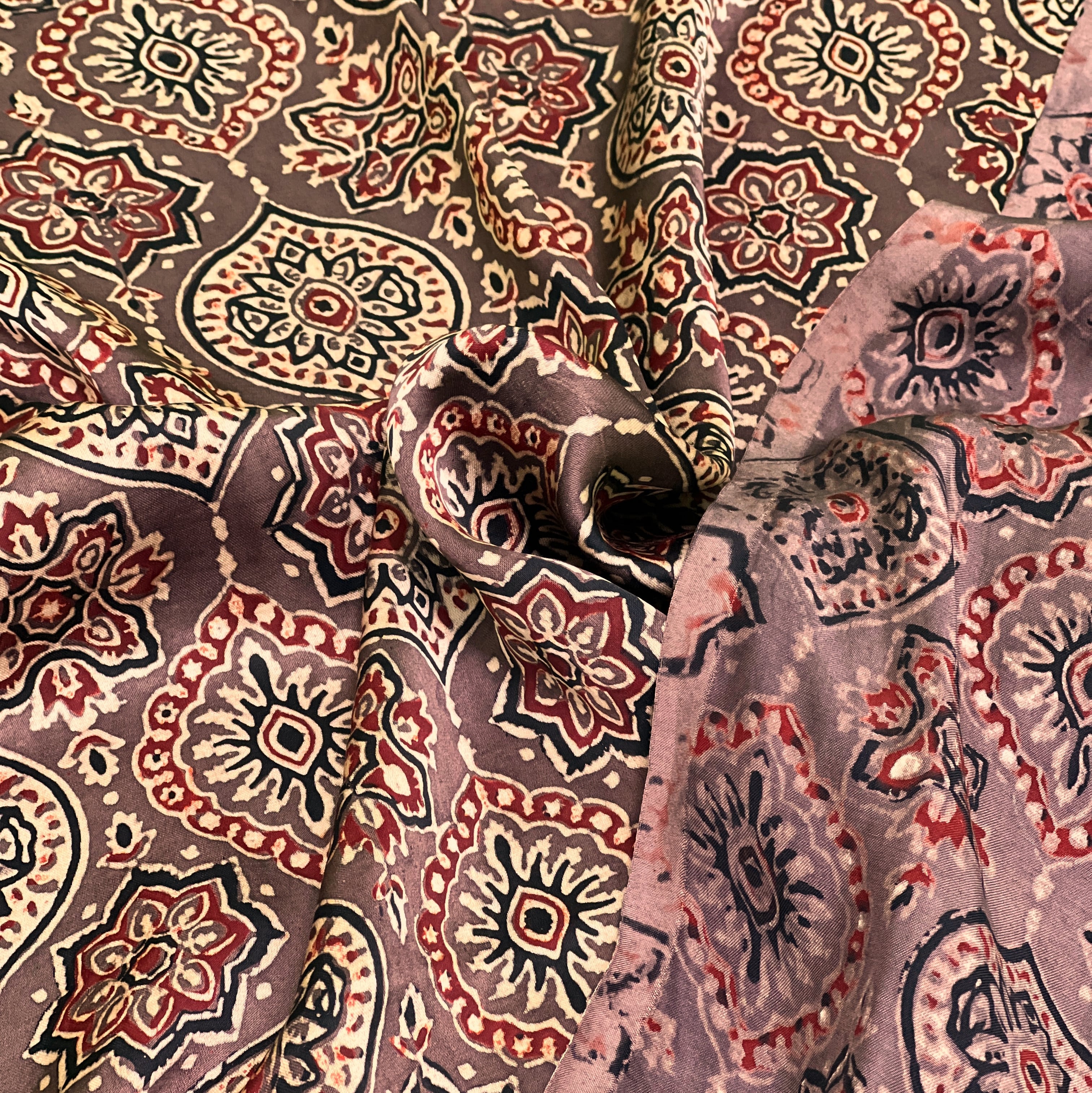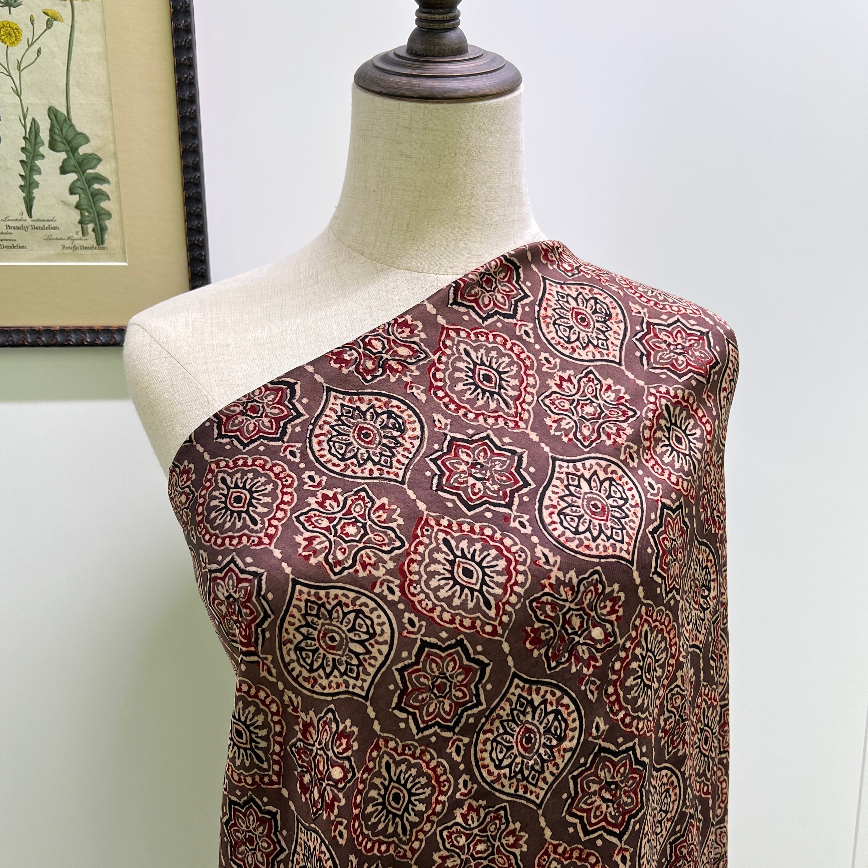 インド産ハンドブロックプリント生地(シルク) NHBS0010 ※2M以上ご希望の場合はお問い合わせ下さい