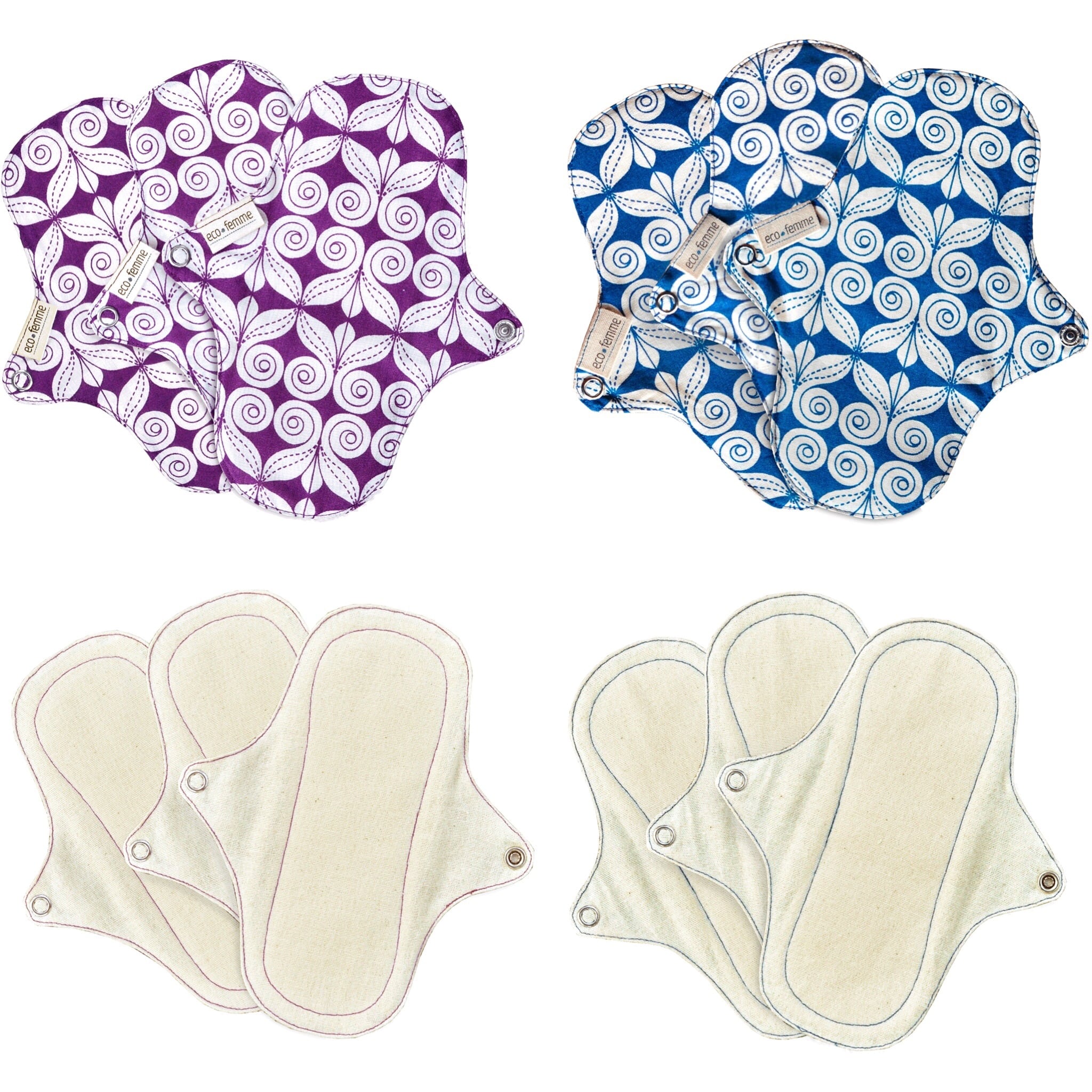 軽い日用 防水あり/なし 布ナプキン 6枚+トラベルポーチ オーガニック フェアトレード Eco Femme