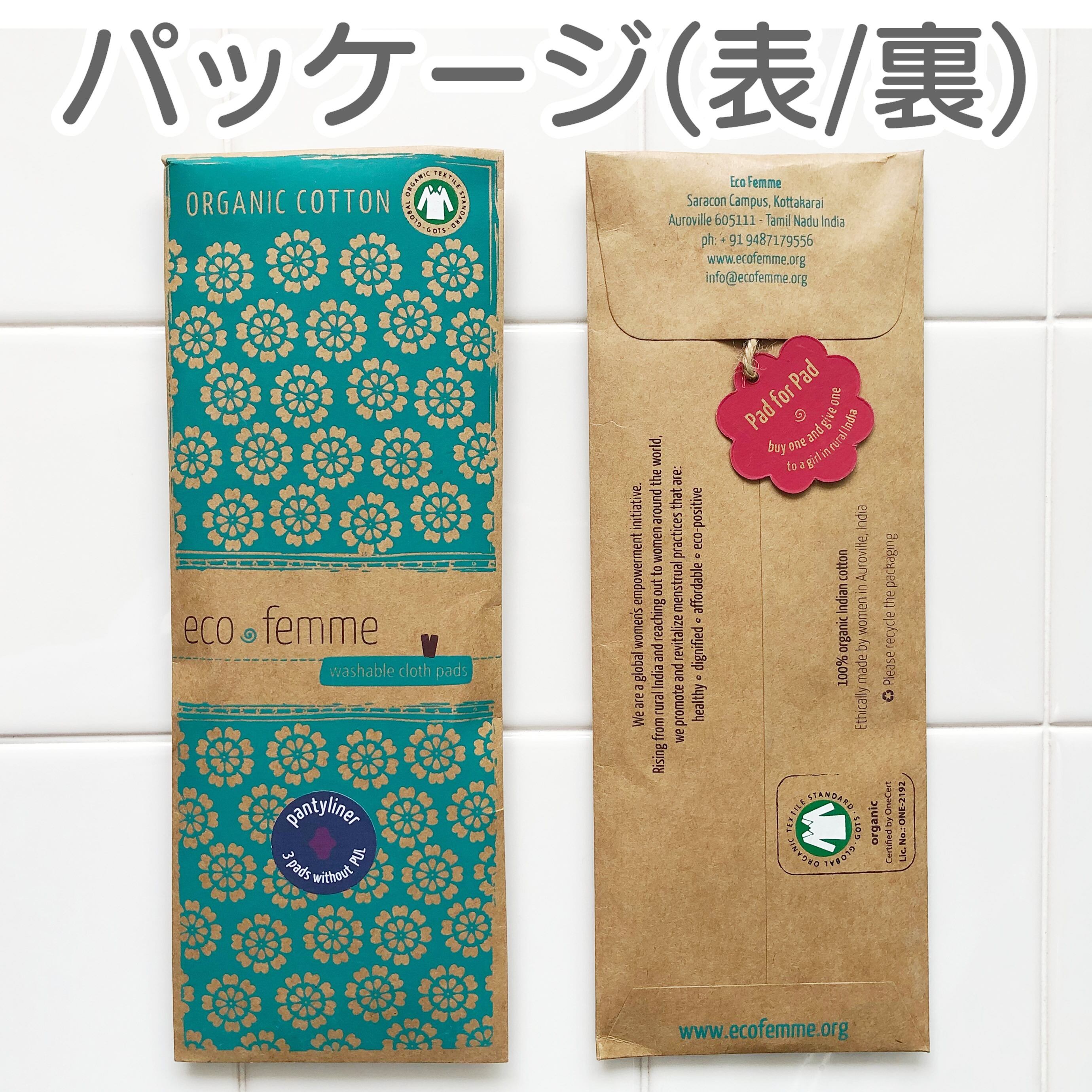 軽い日用 防水なし 布ナプキン 3枚+トラベルポーチ 肌面色付き オーガニック フェアトレード Eco Femme