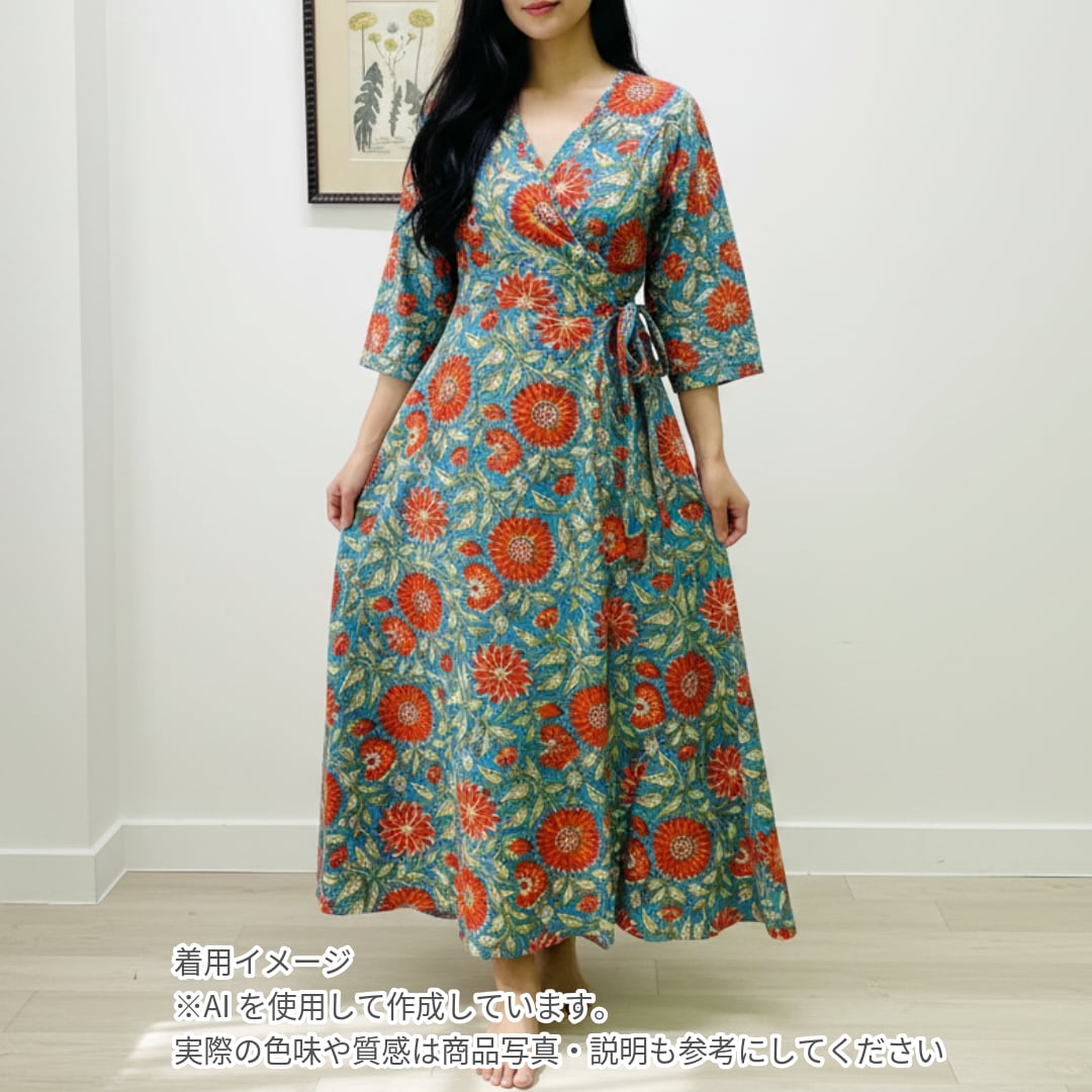 木製の型を手で押し当てながら色柄を重ねていくインドの伝統的なプリント生地です。