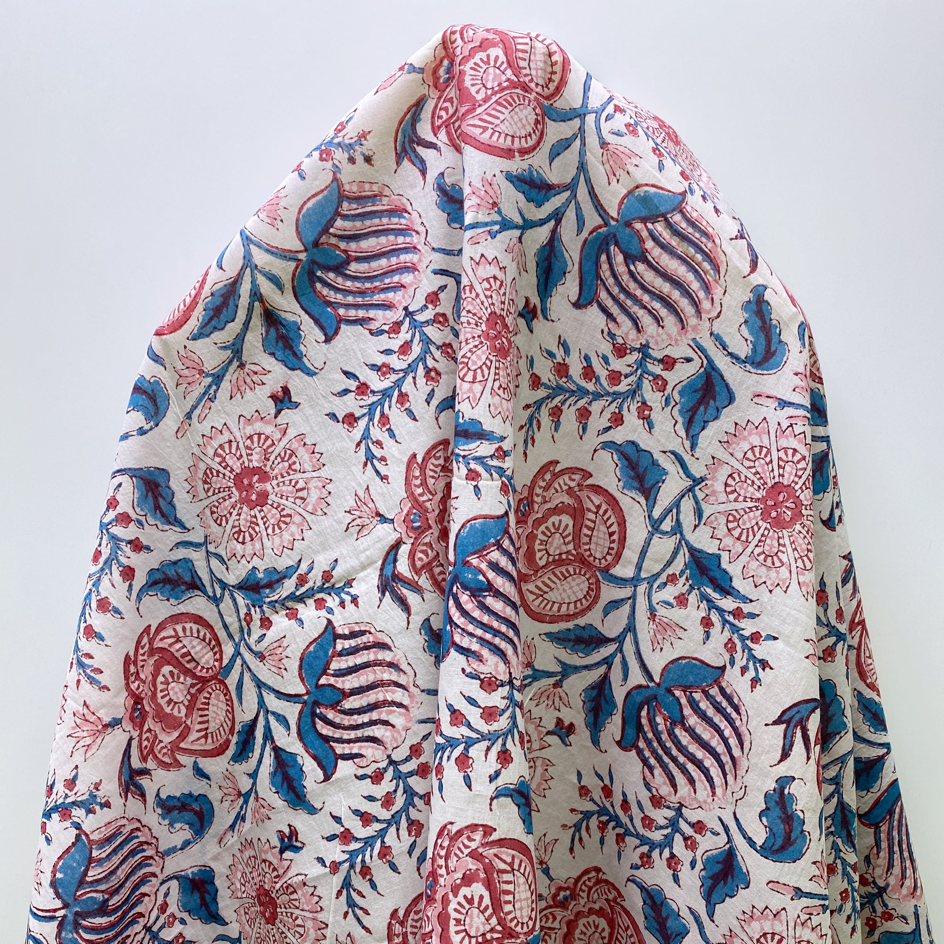木製の型を手で押し当てながら色柄を重ねていくインドの伝統的なプリント生地です。