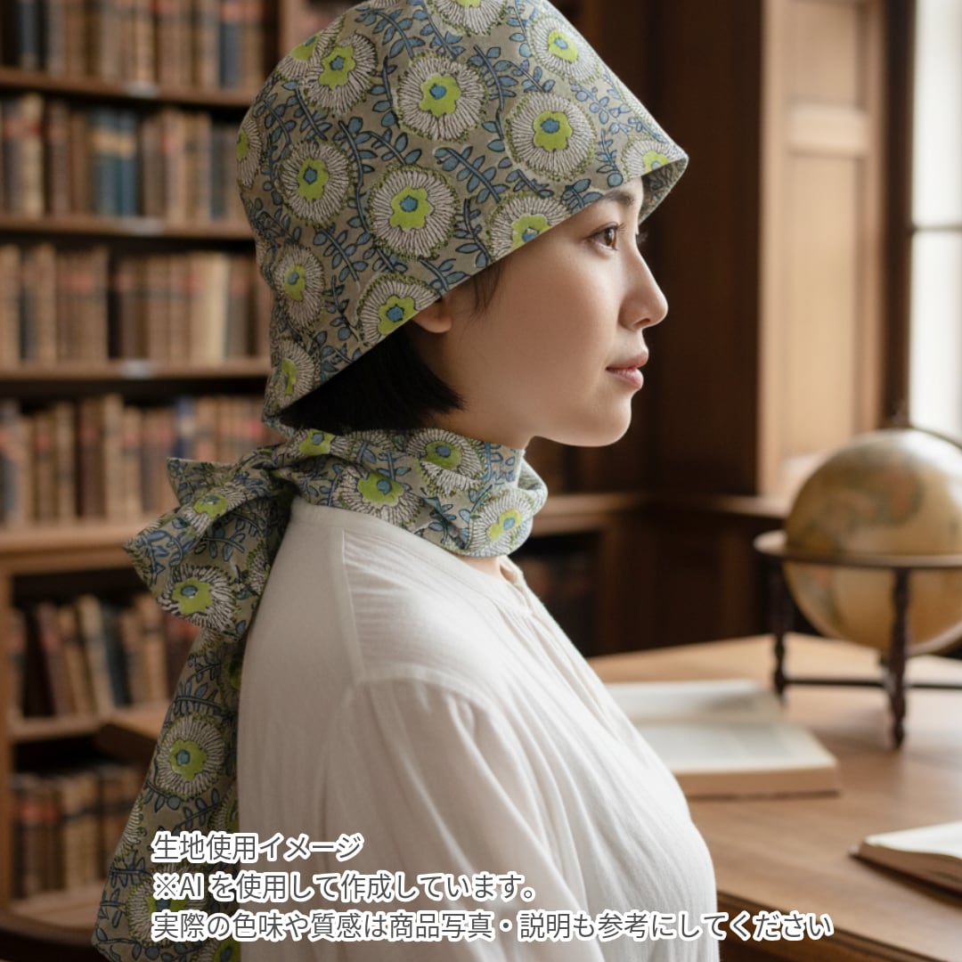 インド産ハンドブロックプリントのヘアロスキャップ(医療用帽子/ケア帽子)です