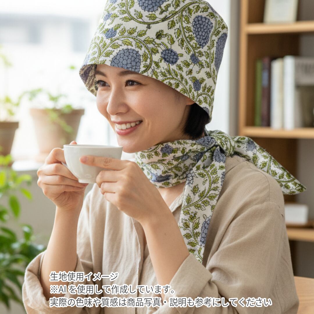 インド産ハンドブロックプリントのヘアロスキャップ(医療用帽子/ケア帽子)です
