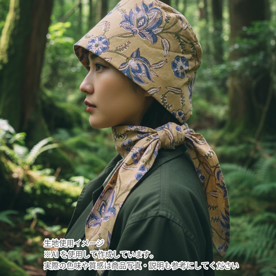 インド産ハンドブロックプリントのヘアロスキャップ(医療用帽子/ケア帽子)です