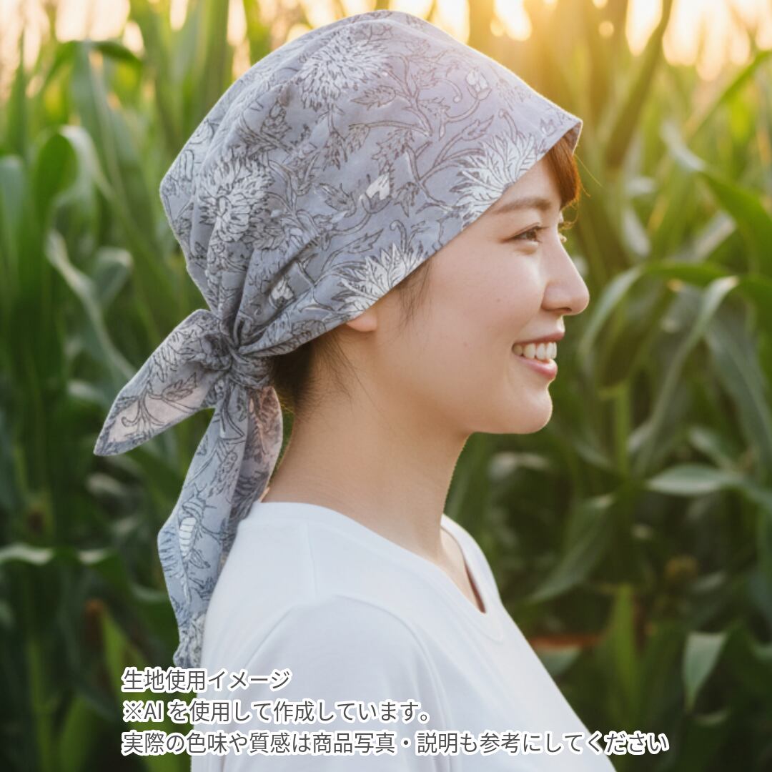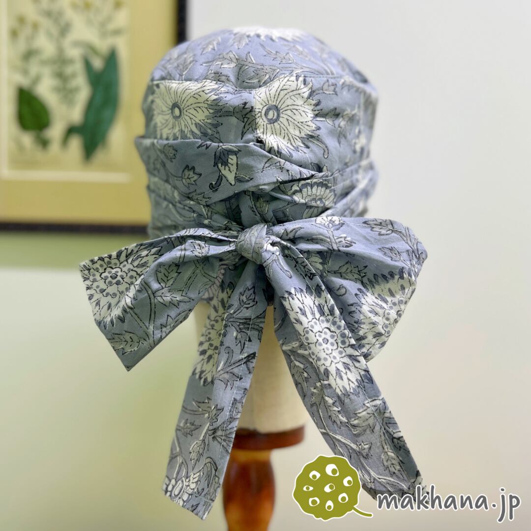 インド産ハンドブロックプリントのヘアロスキャップ(医療用帽子/ケア帽子)です