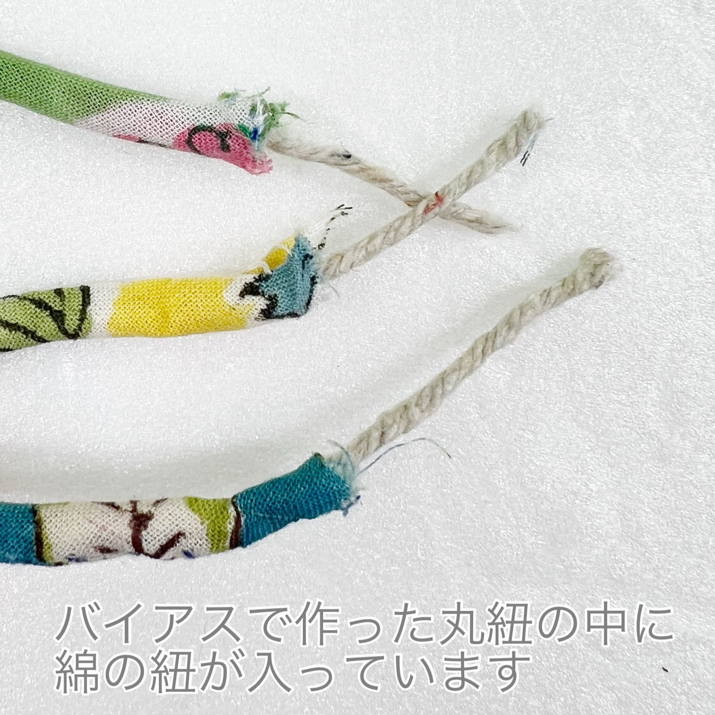 ※丸紐はバイアスで作った丸紐の中に綿100%の紐が入っています