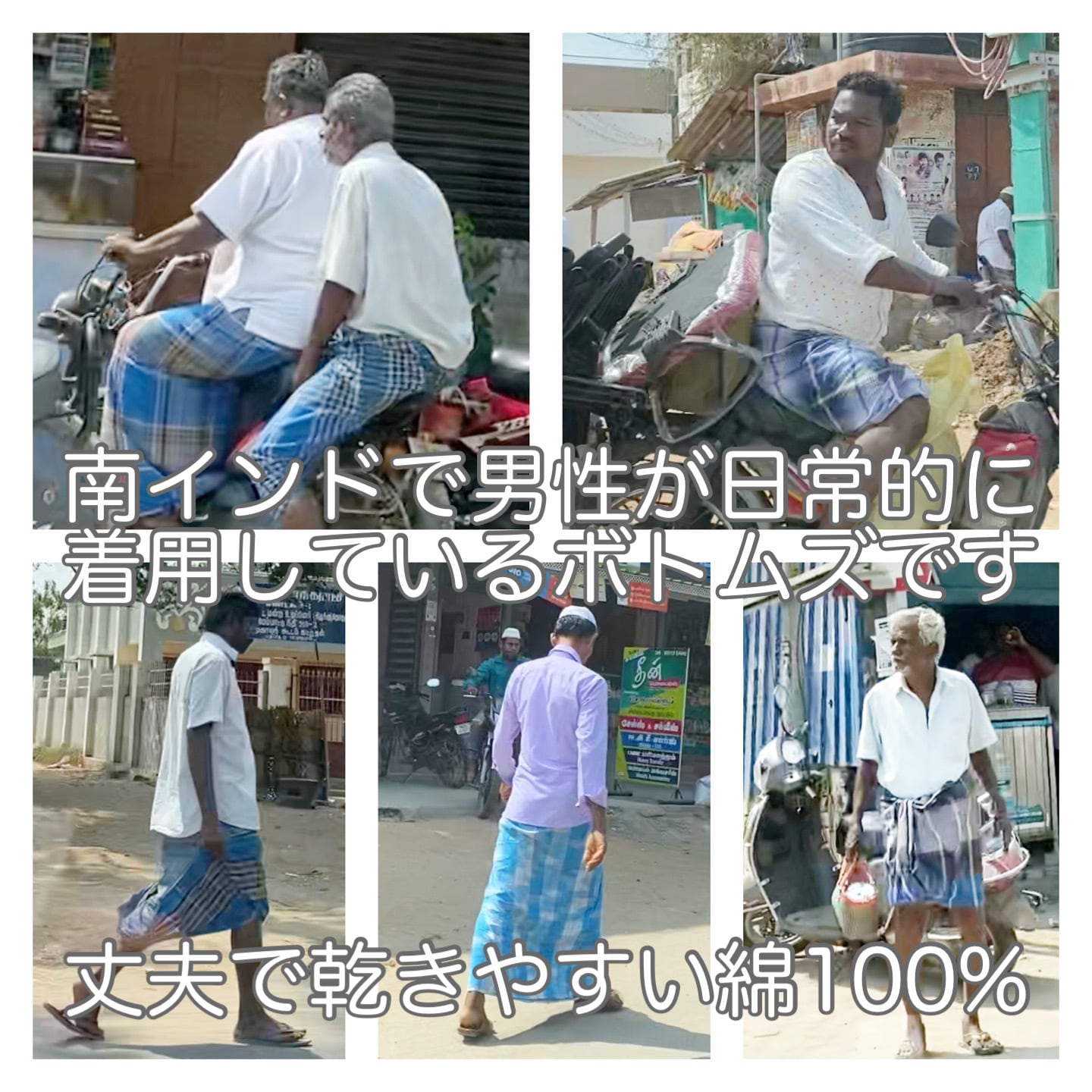 インドで男性が腰に巻いて着用する涼しげなボトムズです